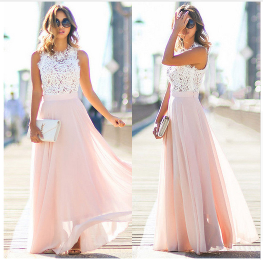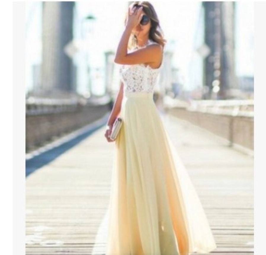 NEW レースシフォンロングドレス